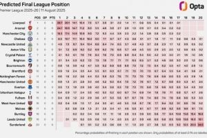 2025-26赛季英超联赛开赛在即,看看Opta超级计算机对新赛季英超的预测。