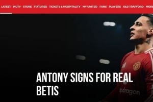 曼联与皇家贝蒂斯已就安东尼的永久转会达成协议,正待国际许可与注册程序完成。这位巴西国脚将重返上赛季后半段曾以租借形式效力的俱乐部,期间在各项赛事26场攻入9球。