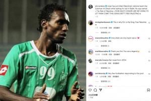 坎通纳在社媒写道:“以色列刚刚在袭击拉法时,杀害了巴勒斯坦的球星苏莱曼-奥贝德,他被称为巴勒斯坦的贝利。这样的种族灭绝还要持续多久?解放巴勒斯坦!”